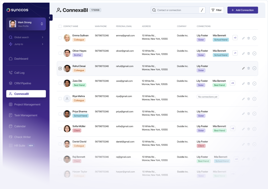 Manage your contacts effortlessly with our centralized database. Easily categorize and share contacts, and enjoy features like duplicate contact recognition, privacy settings, and more.
